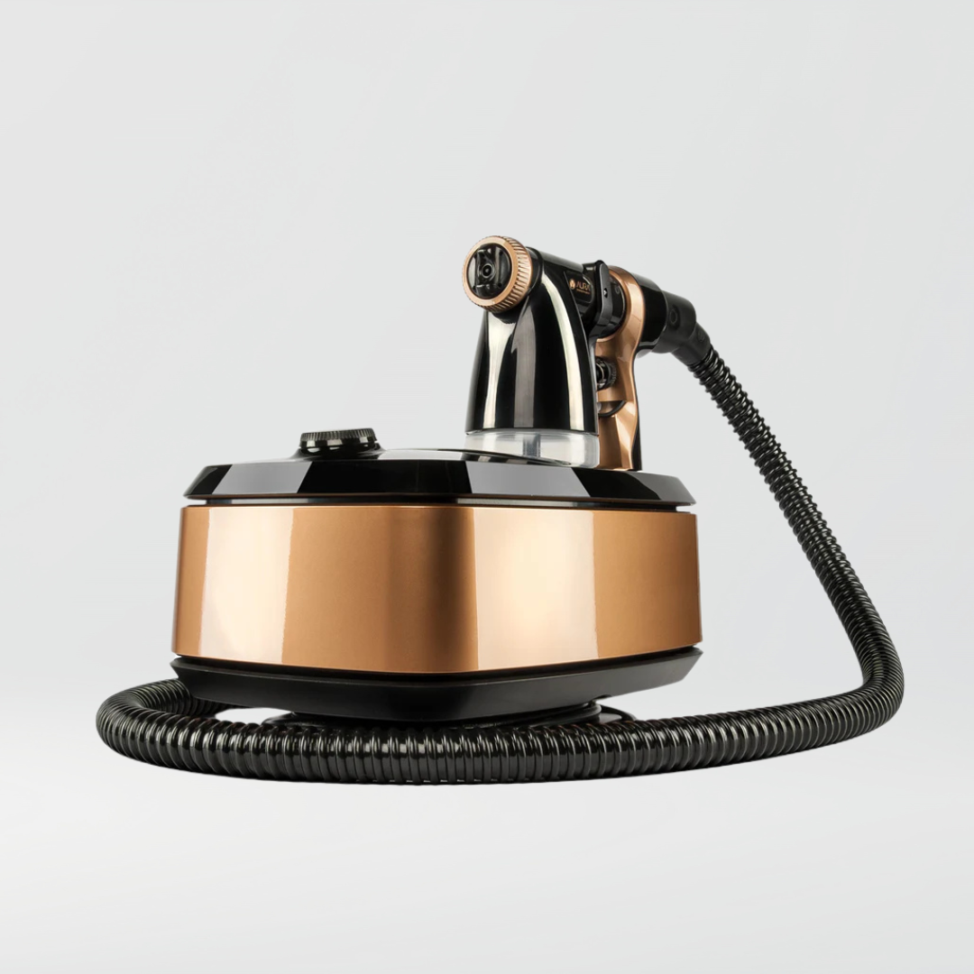 The gun is comfortable to hold. A simple flow adjuster behind the trigger allows the user to compensate for different solution viscosities. The cup has a sensible 200ml capacity. The hose is made from a flexible low-memory material, is a reasonable length and has a unique locking system to prevent ‘blowouts’.