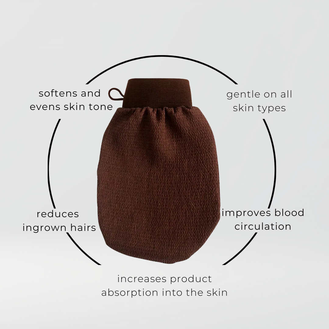 This multiple-beneficial exfoliation Kessa Mitt removes dead skin cells and rejuvenates the skin whilst improving circulation and preventing cellulite. It is also ideal for use prior to hair removal 24 hours prior to tanning in the salon or for home tanning.